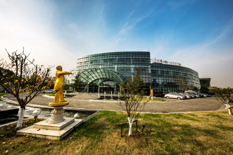 赛燕然产业园由法国的一位著名设计师设计建造,整体建筑风格现代时尚。园区共有3栋建筑组成,分别为办公楼、展示楼、生活楼,其中左边弧形主楼为办公区,共4层。位于中间的是展示楼,后方为生活楼。园区内环境优美,内有喷泉、观景台、特景水池、观景庭院等,此外篮球场、停车场等设施也一应俱全,为员工的办公和生活提供便利和保障。
